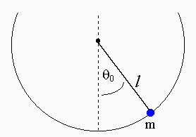 For small initial angles of displacement qo, the plane pendulum is like the simple pendula we've seen before, and it obeys simple harmonic motion (SHM), with the period of oscillation given by T = 2p(l/g)1/2. For larger angles, the period deviates from this expression.
