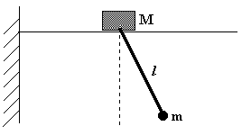 Consider the system shown in the figure to the right. A mass M is free to slide on a horizontal frictionless air track. Suspended by a pivot and a light rod of length l is another mass m. (The pivot is attached in a clever way to the bottom of mass M so that the whole system can slide freely along the air track surface.)