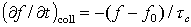 In class last time, we touched on the "relaxation time approximation" for the Boltzmann transport equation. Basically, to use this approximation, we say: In your own words, try to explain what this equation means. We'll discuss this more in class. Also, consider an example of diffusion. Why do you think the characteristic (or "relaxation") time, c, should be of the order of the time between collisions?